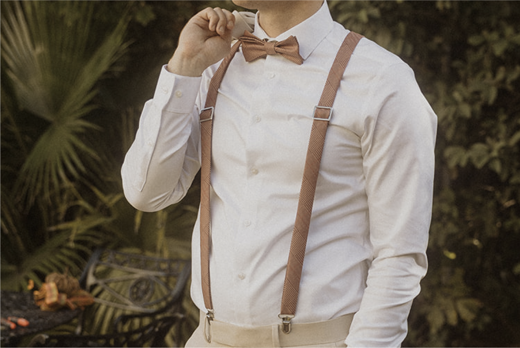 Create a layered and fun look with matching bow ties and suspenders or take a more casual approach with suspenders alone.